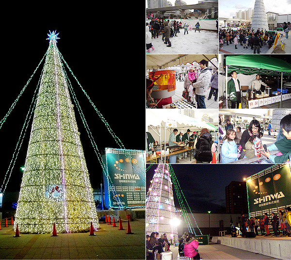 2012.12.26今年は「ホテルプラザ神戸」「六甲アイランド振興会」と協賛しての企画イベントとして、六甲アイランドリバーモール内公園に高さ15mの巨大クリスマスツリーを設置しました。