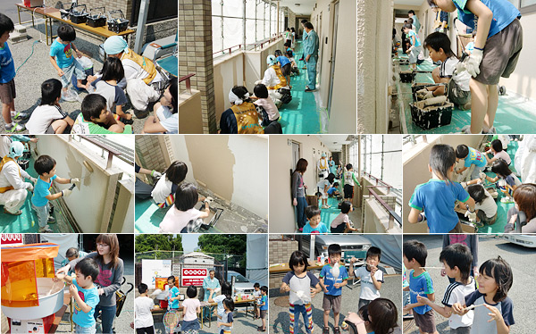 2011.06.056月4日(土)「グラン・オーパ」(大規模修繕工事)にて入居者様や近隣住民のお子様とペンキ塗り大会を実施致しました。