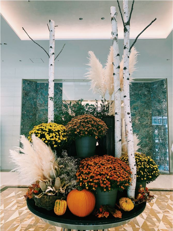 秋の庭でハロウィンを楽しむようなシーンを表現しております。