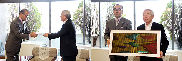 豊中市へ緞帳(どんちょう)を寄贈し、贈呈式が行われました。