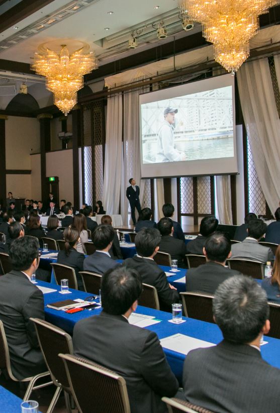 4か月に1度行われる全体会議では、各社の取り組みについて学び、普段関わりの少ない他部署やグループ会社の社員の方々と交流する目的で開催されております。