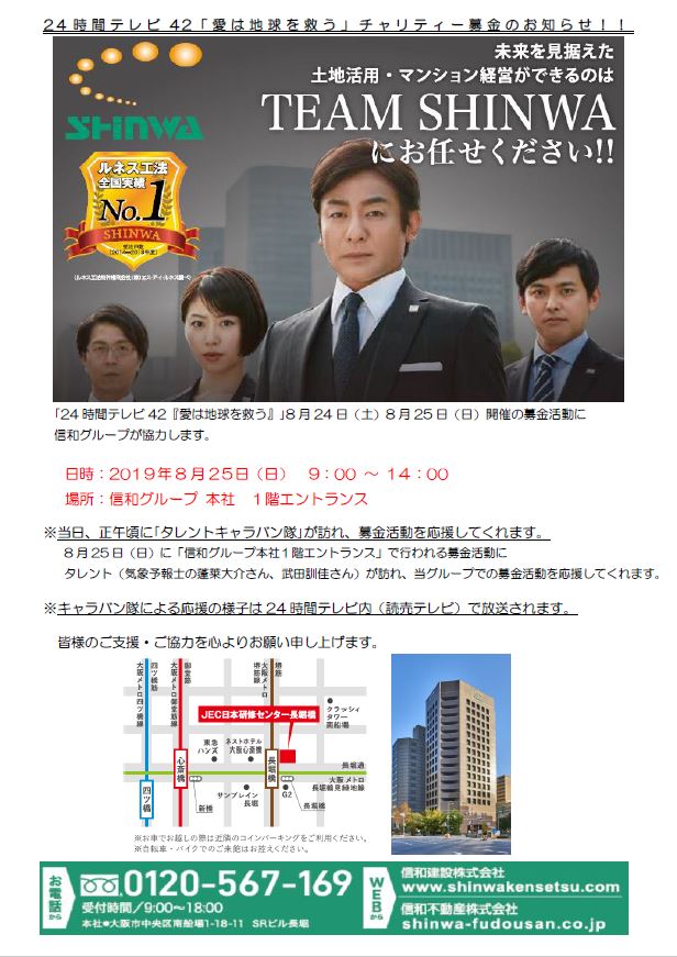 24時間テレビ42「愛は地球を救う」チャリティー募金のお知らせ