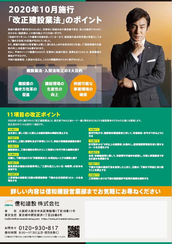 また、2020年10月に施行された「改正建設業法」のポイントについても載っております!