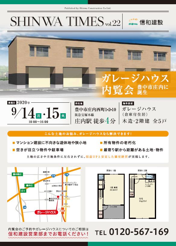 SHINWA TIMES_vol22!豊中市でガレージハウスの内覧会を開催します!!