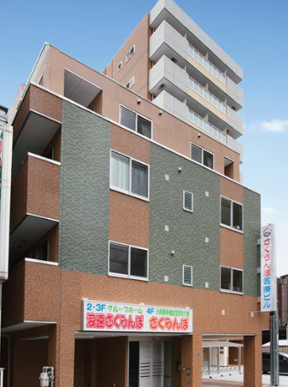 マンション(「ドルチェヴィータ難波南」)の1階が保育施設になっていますが、その両隣は、高齢者向けのマンションとグループホームとなっています。