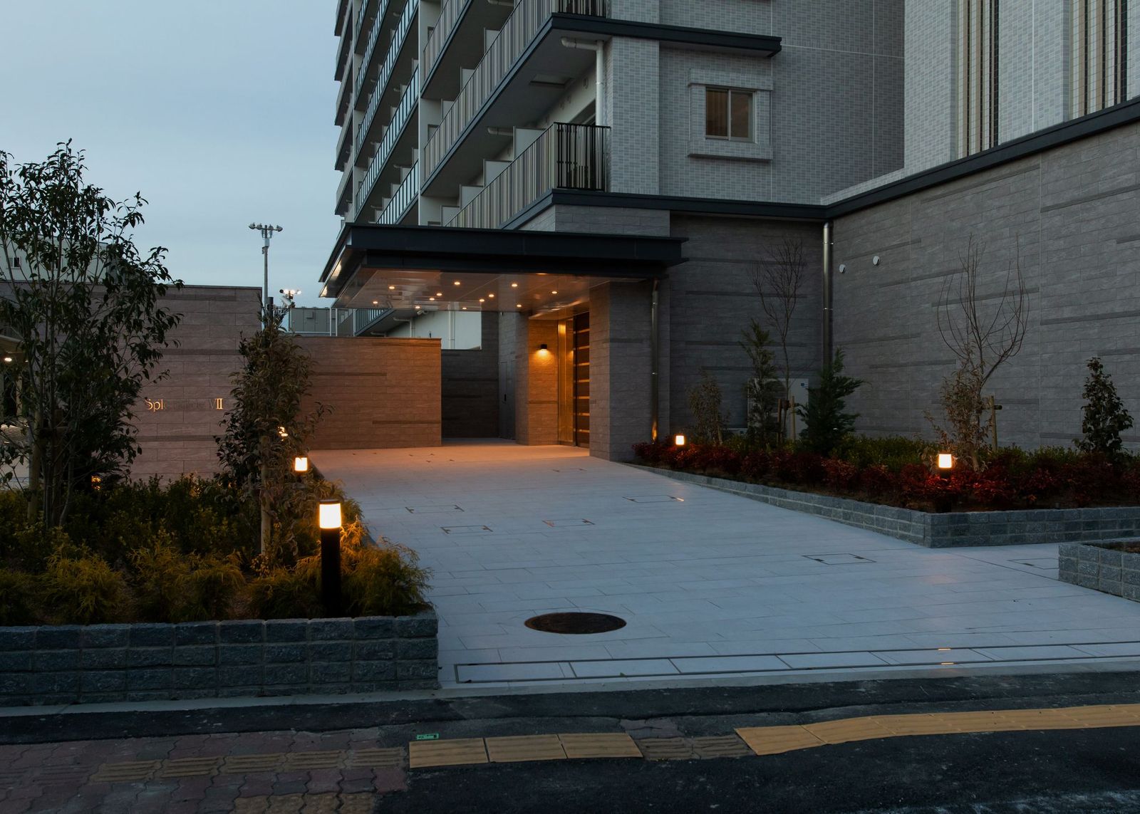 建築デザイナーにより練り上げられた外観は、ベージュを基調としながら、石材タイルを中心にさまざまな異なる素材を活用し、色彩のグラデーションを活かしながら、ピンポイントのアクセントを施すなどして、高級感のある仕上がりにしました。