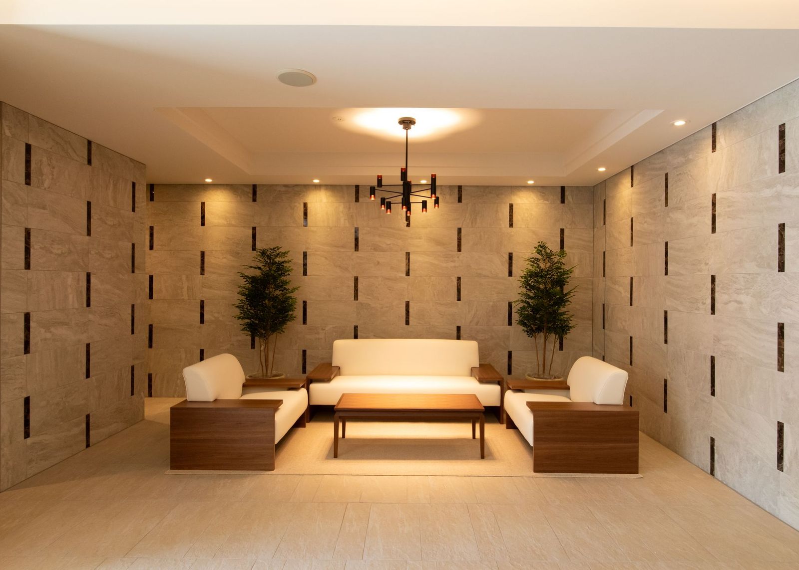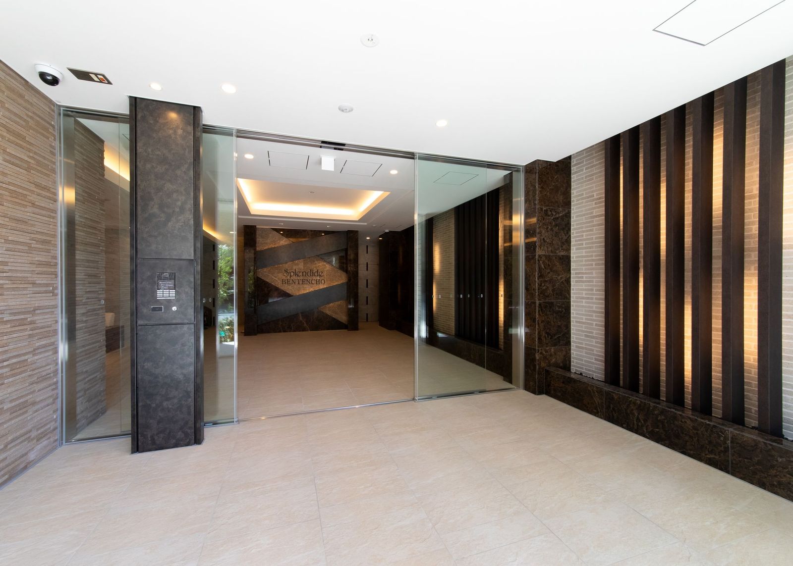 エントランスは床面、壁面に色彩の異なる石材をふんだんに用いて、ラグジュアリーでゴージャスな贅沢空間としました。