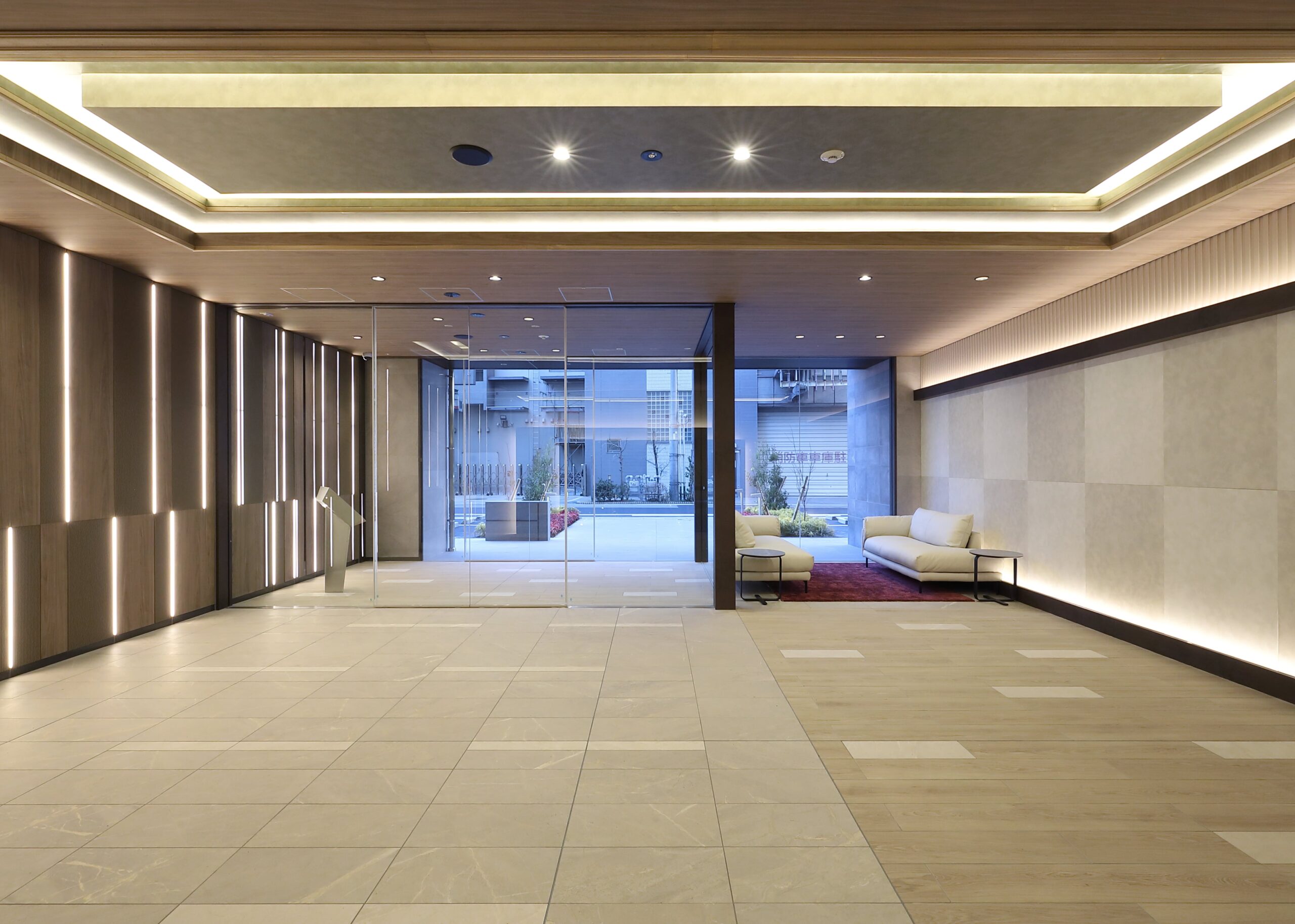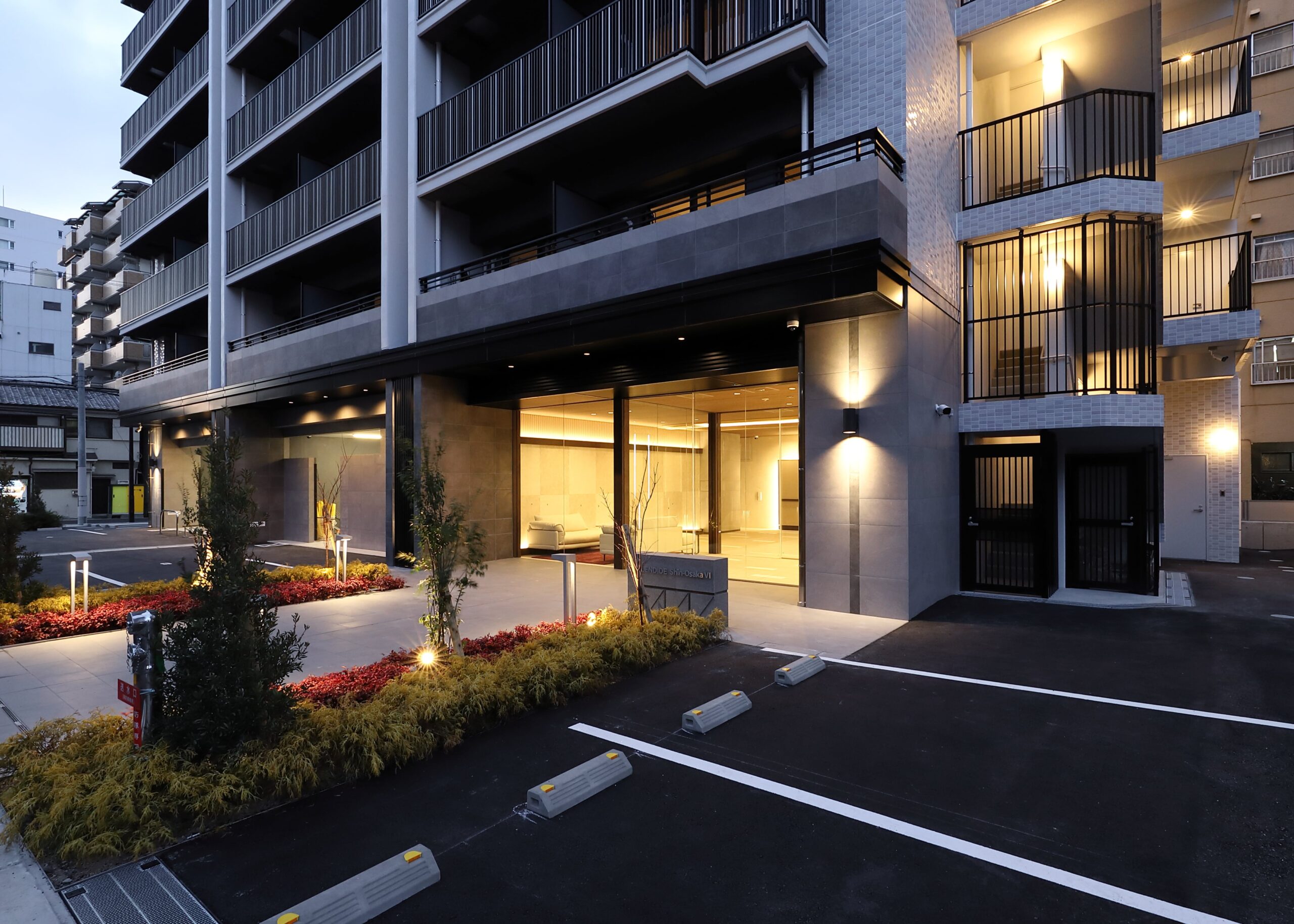 外観は、モノトーンを基調したファサードがシンプルかつスタイリッシュな印象でありながら、街並みに自然と溶け込みつつ洗練された高級感のある佇まいです。