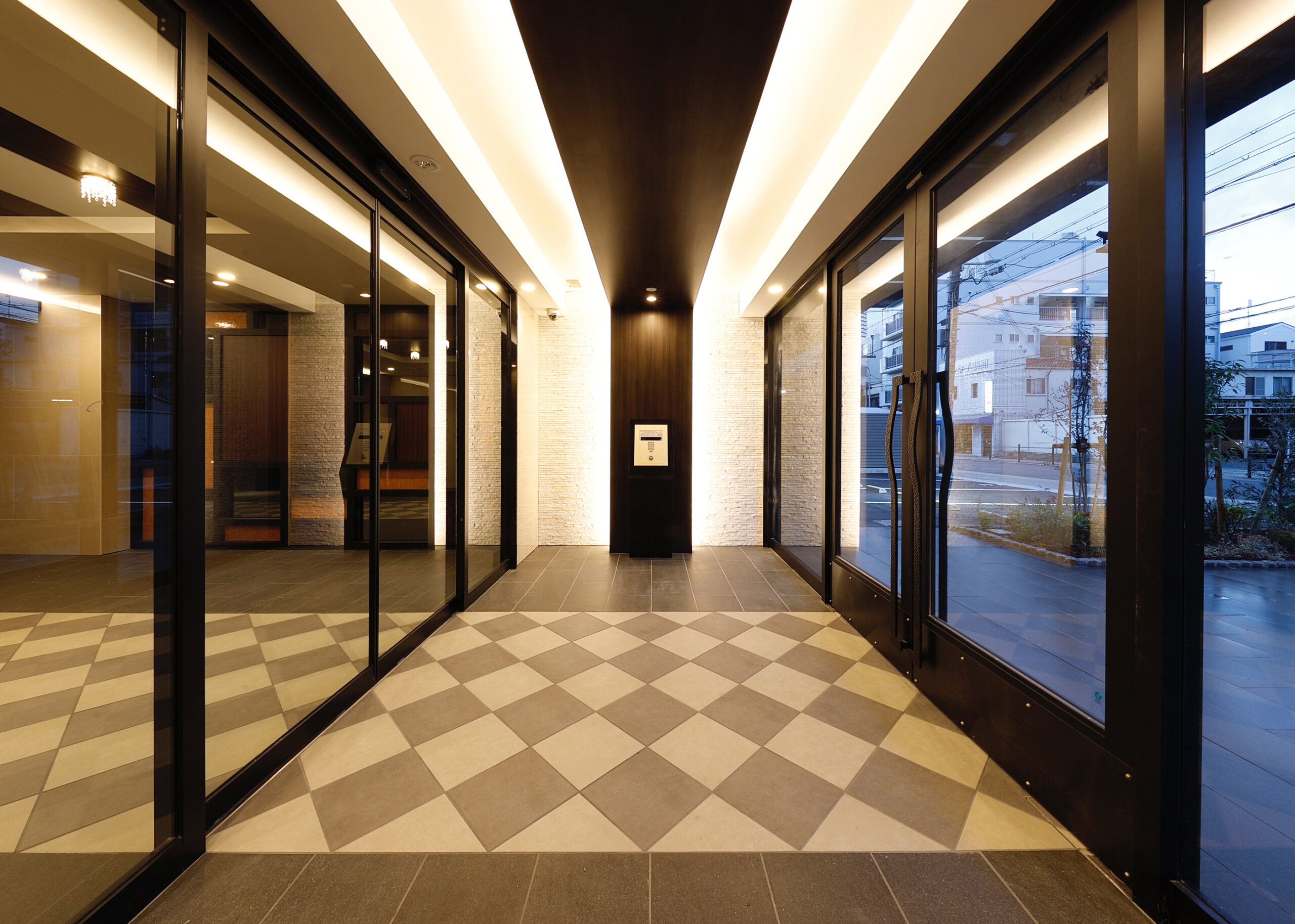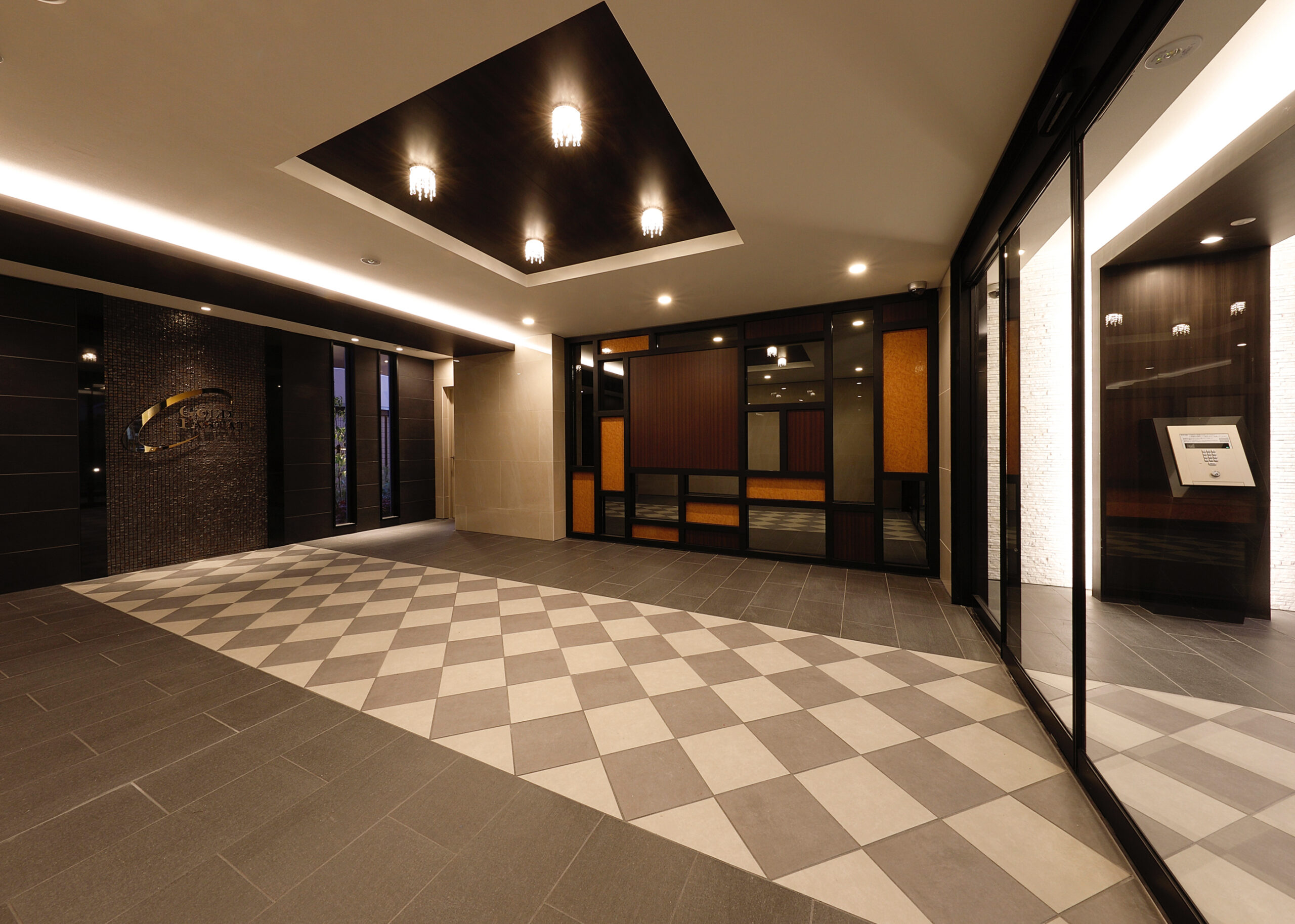 エントランスホールにはモザイクタイルをアクセントとして取り入れ、デザイン性を感じさせる迎賓空間を演出しております。