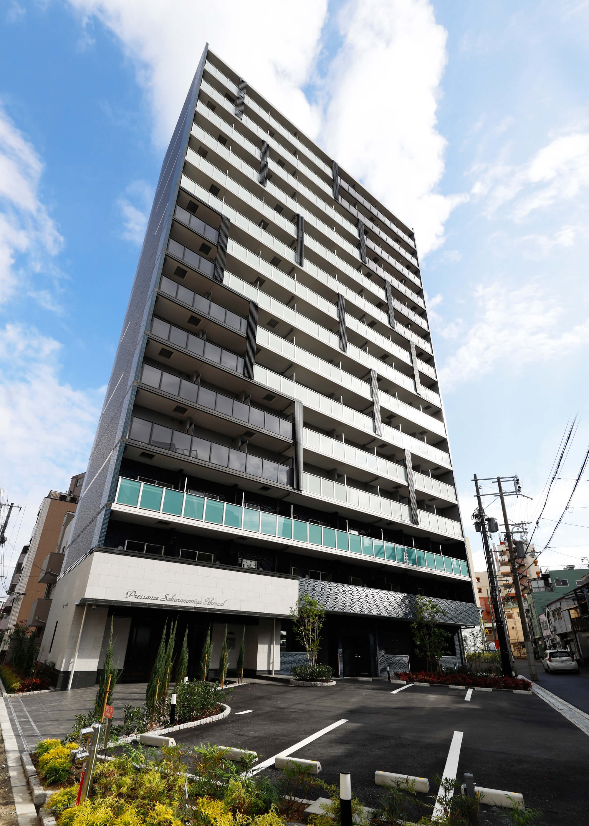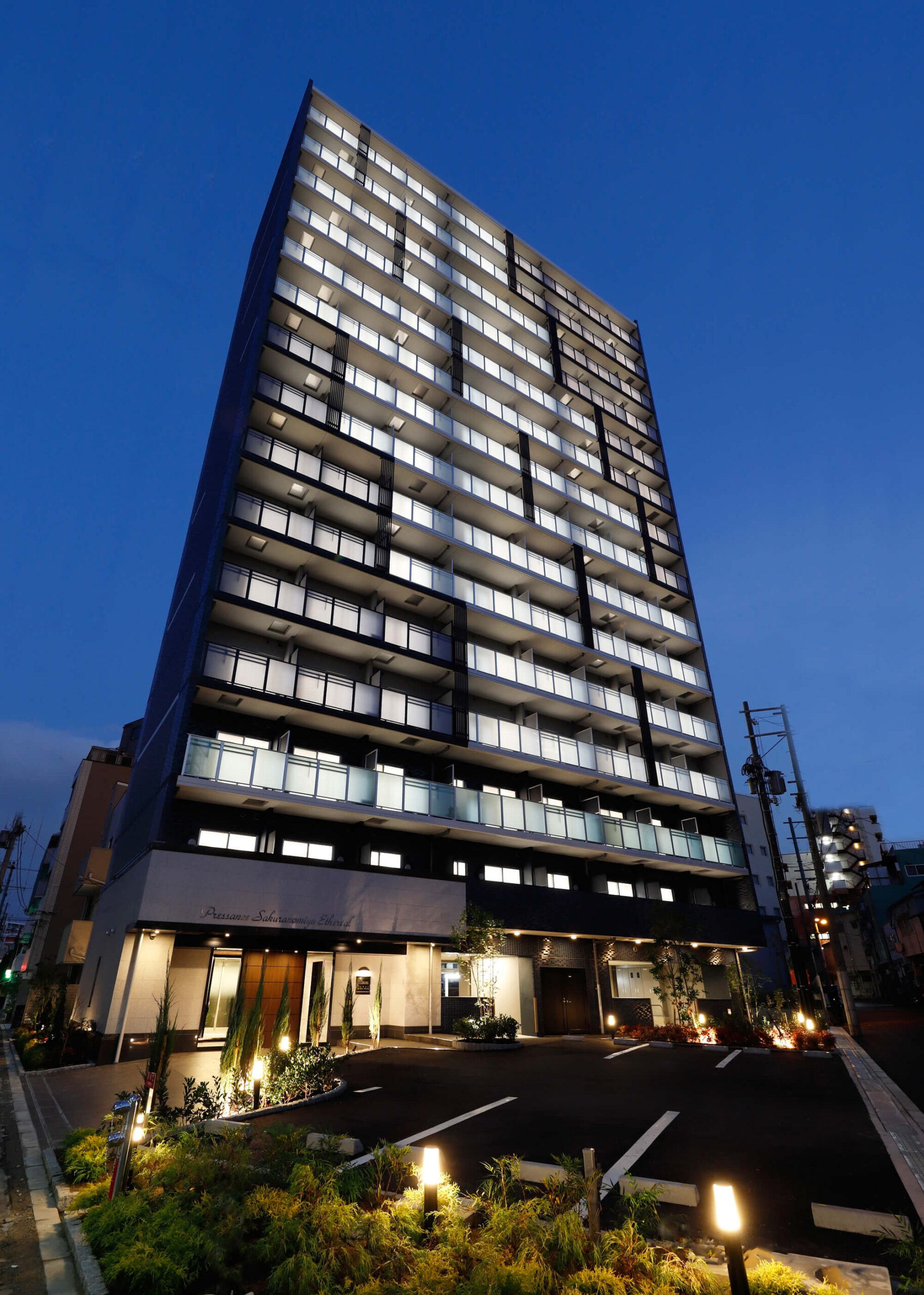 プレサンス桜ノ宮イーサリアルは、2022年11月竣工、15階建112戸の大型デザイナーズマンションです。1階バルコニー部分には異なる質感のタイルを用い、ガラス手摺にアルミ格子を五線譜記号のように配しました。配色をモノトーンにすることで周囲の景観に溶け込みつつも、高級感のあるハイクラスなラグジュアリー性を表現した外観に仕上げました。また、ガラス手摺にアルミ格子のマリオンを配したファサードはスタイリッシュで都会的な印象を与え、建物の外観を引き立てています。