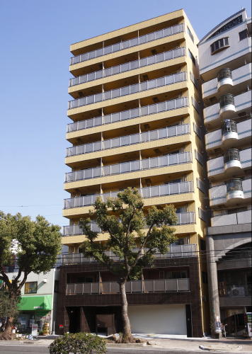 ALC板にデザインパネルを採用。電車からよく見えるグッドロケーションに負けない様に、オーナー様と何度もパネル色見本を見比べ、鉄骨造にありがちな無機質な印象を出さずに、明るい印象に仕上げることが出来ました。立地の良さから高い入居率を維持されています。