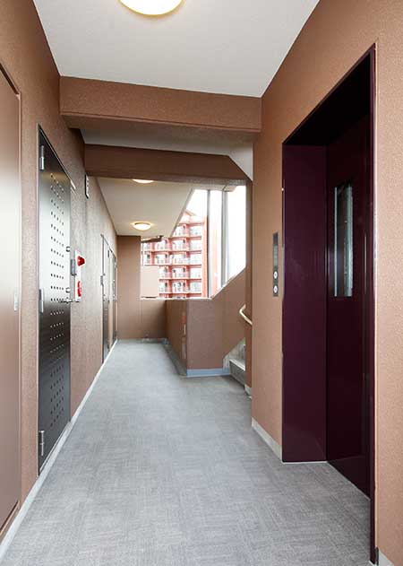 2棟並びの賃貸マンションです。 外観は落ち着きのある茶色のタイル貼りとなっています。 1階部分に床下収納があり、1階のバルコニーにはバイク置き場があります。 新大阪駅が近くにある為、交通アクセスが非常に良く、ペット共生型マンションのため、非常に人気物件です。