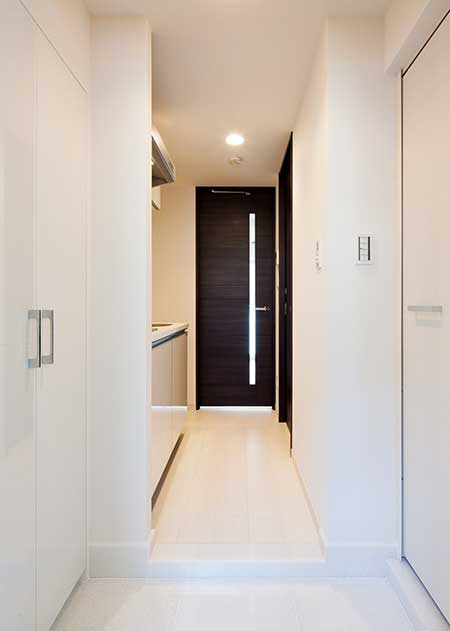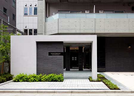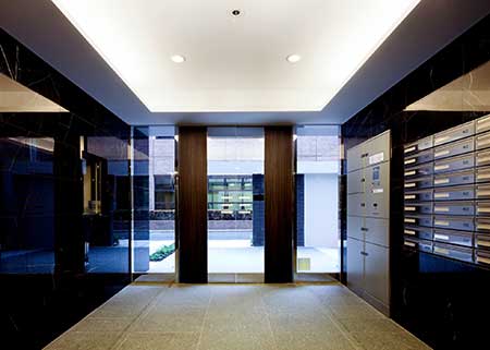 東京都港区という立地と入居者層に見合ったシックでモダンな造りです。道路からよく見える妻側の外壁全面にボーダータイルを貼るなど、ハイスペックな仕上げ材をふんだんにあしらい高級感を演出しました。エコポイント対象物件として、省エネ性能が高く、環境負荷を抑えた建物となりました。