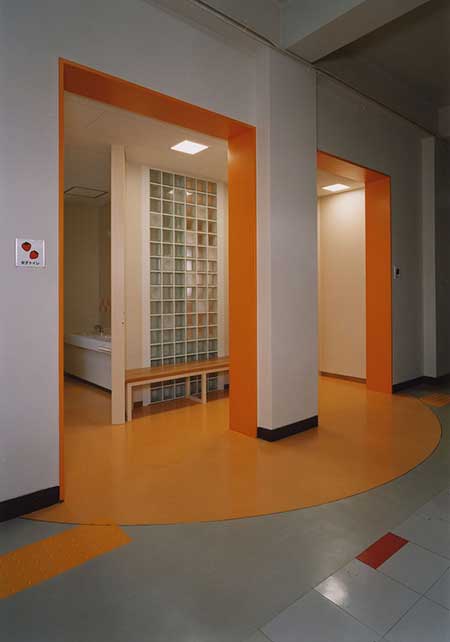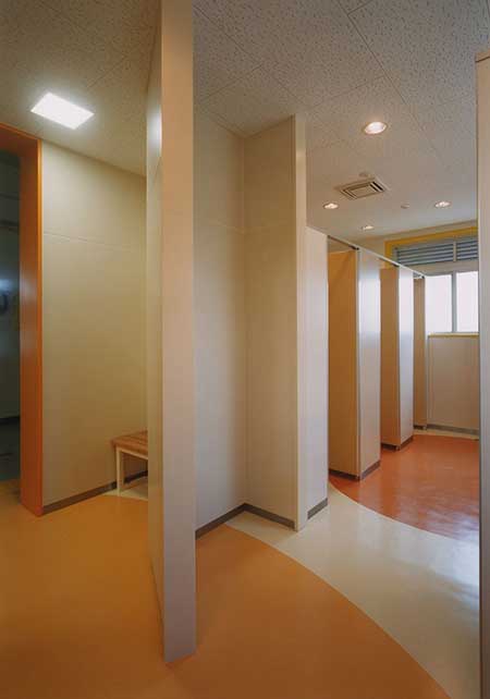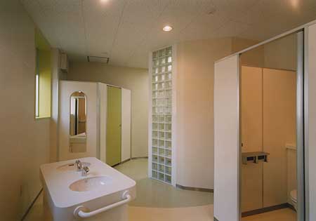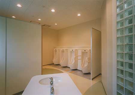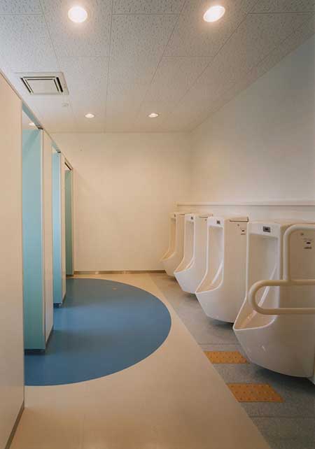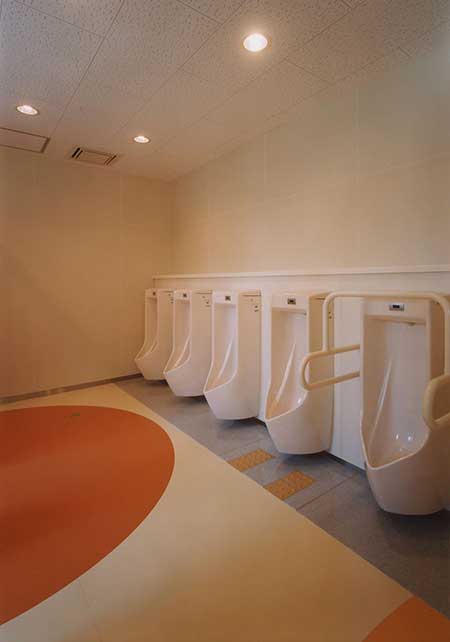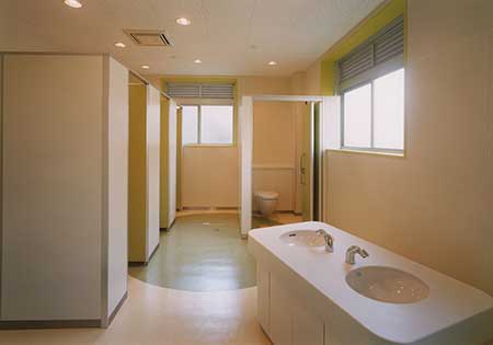 豊中市の公共工事です。古くなった小学校のトイレをカラフルな色を用いて明るく、清潔感のある仕上がりに改装しました。使いやすさにも考慮し、子供達も喜んでくれました。