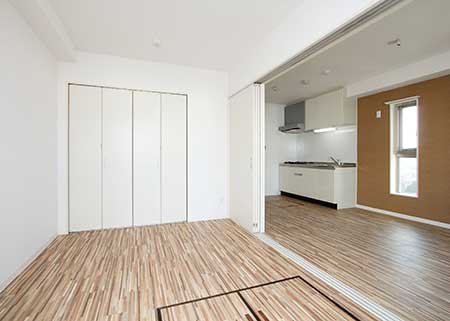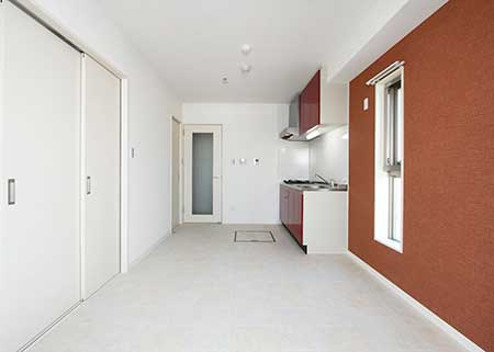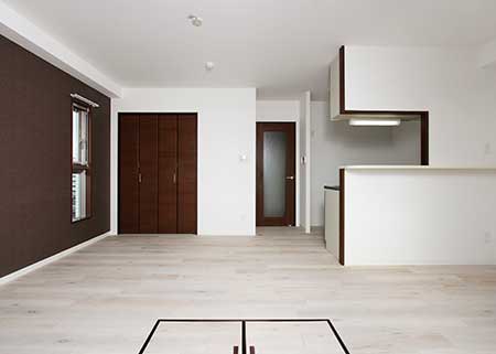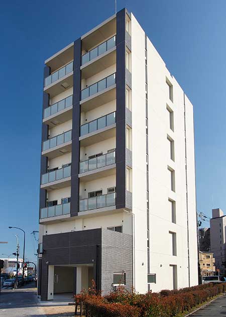 ルネス工法による、ワンルーム賃貸マンションです。ワンルームですがかなり広めのお部屋で、尚且つルネス工法により床下収納スペースが豊富にあり、採光も恵まれています。狭い敷地を有効活用したマンションとなりました。