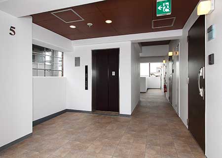 信和グループの開発賃貸マンションです。 「関西の住みたい街ランキング」等で必ずランクインされる人気の武庫之荘エリアでの開発となり、上品なモダンさを持ちつつ、自己主張が出来るマンションを目指しました。外観の正面から見るとアースカラーを基調にしながら、非対称に色を分けることで自然に自己主張し、また一見一枚の岸壁のように見える風除室の自動ドアをくぐると、そこは茶色と白で統一された温かみのあるエントランスが現れます。 住戸内は梁を天井ではなく床下に設置することで、居住空間を広げると共に、床下にも収納スペースを確保できるタカユカ工法を採用しています。