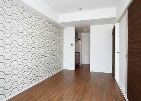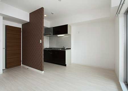 商店街の中という珍しい立地条件のワンルーム賃貸マンションです。 黒と白の市松模様をベースにし、赤のラインが入った外観やエントランスがクールな印象を与えています。一方内装は、茶系の色を使ったクロスや建具や設備によって、木のイメージであたたかみがあります。地下鉄蒲生4丁目駅まで徒歩1分で、商店街を通るため雨でも塗れずに通勤ができ、お買い物も便利で住みやすいマンションとなりました。