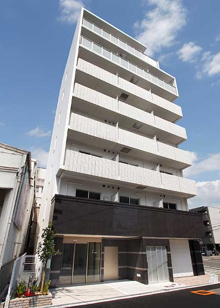 少し広めの賃貸ワンルームマンションです。オーナー様が女性の入居者の目線を配慮され、清潔感のある白を基調にしたタイル貼りの外観となっています。オーナー様の奥様のご意見も多く取り入れられています。ワンルーム賃貸マンションとは思えないハイスペック仕様で、全室 洋室フローリングは床暖が完備され、幅750㎜の大きなLED洗面化粧台、オートロックの室内駐輪場が付帯されています。オーナー様が自らマンションを管理されていて竣工後ずっと入居100%と喜んでいただいています。