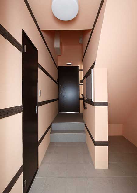 建物内部は、ペールオレンジ色の壁に茶色のタイルをアクセント使いすることで、あたたかな落ち着きとオシャレさを併せ持つ空間を創出しました。