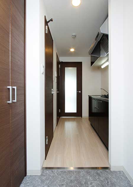 間取りは単身者をターゲットとした1K/1LDKで、全室角部屋設計のため陽光が入り、風通しも良く、快適な生活空間を期待できます。内装は、温かみと清潔感があるブラウンとホワイトを中心としたカラーで統一し、入居者に落ち着きのある心地よい空間を提供しています。
