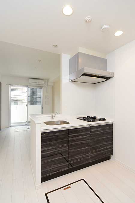 内装は白色を基調にし、入居者がそれぞれの好みに応じて自分らしい空間を演出することを可能としました。同様に、それぞれ独立したバスとトイレ、天気や外部の視線を気にすることなく洗濯可能な浴室乾燥機能、システムキッチン、二口コンロなどの付帯設備の充実、インターネット使用料不要などにより、多種多様な異なるニーズを持つ入居者に対応することで、高入居率を実現可能としています。