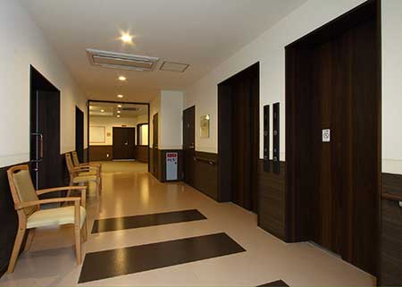 玄関ホールでは、明るく清潔に整えた受付窓口にて、愛らしいぬいぐるみと一緒にみなさまをお出迎えいたします。