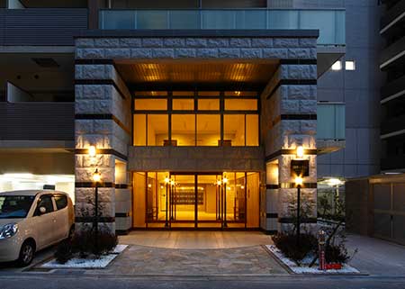 信和グループの開発マンション(投資用分譲マンション)です。コンセプトは、『関西の中心、大阪の中心で暮らすステイタスを象徴する佇まいを」ということで、物件の外観は、シャープさと、暮らしを包み込むぬくもりを感じさせるファサードデザインとしました。素材や意匠を徹底して追求することで、上質さが生まれ、住む方の気持ちを満たします。水都・北浜の風情に調和した物件となりました。