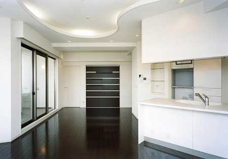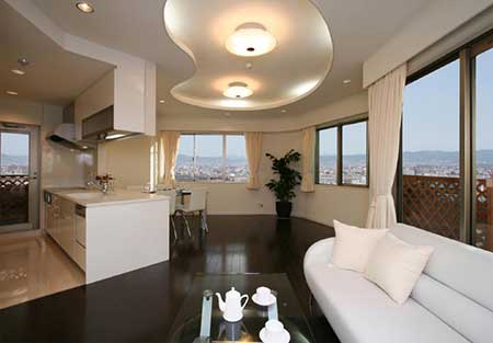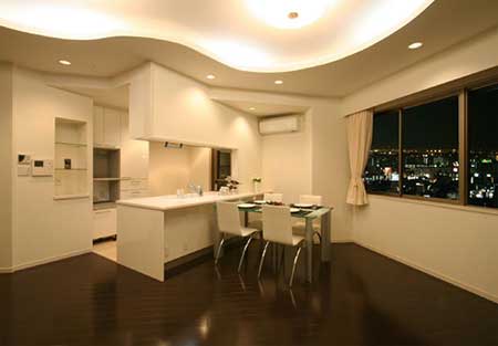 信和建設の開発分譲マンションです。 豊中市少路といえば、北摂の中でも高級住宅街と言われていますが、その地域に相応しいワンフロアー1邸のみという戸建て感覚の贅沢な高級分譲マンションです。 リビングダイニングは曲線を描いた折上天井となっており、陽光や照明の陰影が雰囲気のある空間をつくり出して上質な暮らしを演出します。