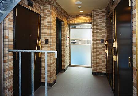 敷地を有効に利用した建物です。白と黒のタイルの調和が斬新です。