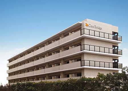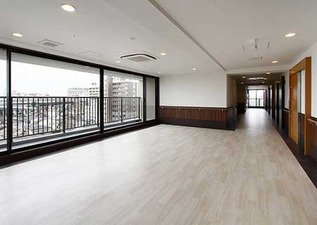 大阪の中心部、天王寺エリアに鉄筋コンクリート造7階建てサービス付き高齢者向け賃貸住宅を建築しました。 斜面地に建てられ、3階には空中庭園を思い出させるようなエントランスがあり、外観も地域に溶け込んだシックなデザインを採用。1階には駐車場、2階には診療所と大食堂を完備。3階から7階には賃貸住宅が用意され 、西面には立地を活かして大阪港がパノラマ風景で眺められる大きなスペースがあり ゆったりとした生活が出来る建物に仕上がりました。