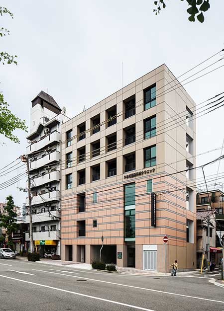 コンフォート春日野は、2015年5月竣工、鉄筋コンクリート造、6階建ての賃貸マンションです。テナント利用にも対応した造りとなっていて、現在は整形外科クリニックが入居しています。外観はブラウン調で、落ち着きと存在感のある仕上がりにしました。フロアごとの共有スペースは内装にこだわり、訪れる人を楽しませる雰囲気を演出しました。