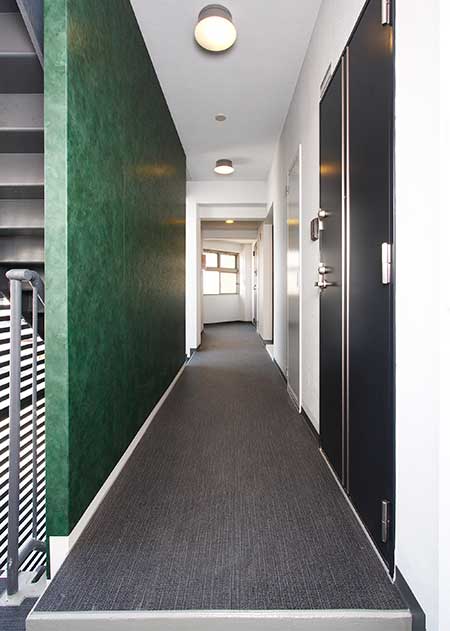 ホテルから賃貸マンションへのコンバージョン物件です。 外観はデザインも新たに改修し、以前の老朽化していた建物のイメージを払拭しました。住戸内は全て新装し、木目調で統一され落着いた雰囲気の内装で、窓を開け放てば淀川より心地よく吹き抜ける風通しが最高です。