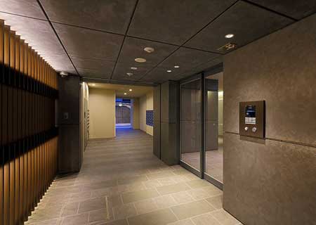 「景観との調和」と「セキュリティーの充実」を基本コンセプトに、外観は、シンプルで清潔感のあるデザインに仕上げ、周囲の景観との調和を図りました。また、オフィス街に位置するためセキュリティー対策を重視し、共用部には非接触キー、住戸内には防犯センサーを導入することで、安心してお住まいいただけるよう設計しました。