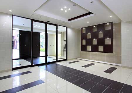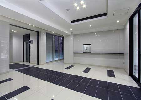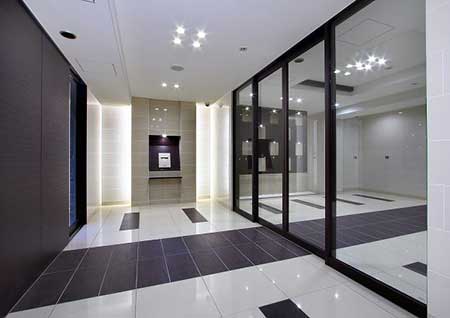 外観の茶系のイメージと変わってエントランスは主に黒と白でスタイリッシュに仕上げることにより、マンション内に入った瞬間、新鮮な印象を与えます。