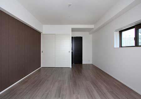 内装は、室内のフローリングを、ダークブラウン、ライトベージュ、グレージュなどの落ち着いた色合いとしつつ、アクセントクロスを用いることで、入居者の多様な好みに対応可能としました。南向きの立地を活かして開口部を広くとっているため、陽光が日中の長い時間にわたって室内へ届きます。またバルコニー部分にはウッドパネルを敷設し、好天時にはテーブルやチェアを置いて第2のリビングとしてくつろぐことが可能です。