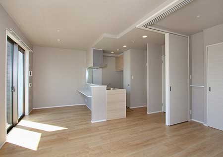 また、7階から10階まではルネス工法を採用し、高さ60センチの床下収納と、天井に梁のない開放的で明るい住空間を実現するとともに、遮音性の高い室内空間を実現しました。