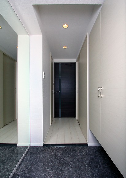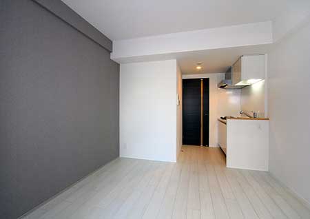 RC15階建て総戸数98戸のワンルーム賃貸マンションです。 建物周辺は、オフィス街で、投資用分譲マンションが建ち並ぶ地域です。 オーナー様からは、これまでに数棟のご依頼を頂いておりましたが、 「これまでの中で最高グレードにしたい」というご要望を頂いておりました。 アースカラーの外壁タイルとアプローチの植栽が落ち着いた印象を残し、エントランスホールに入ると、丸く抜かれた天井と間接照明、そして赤色のスワンチェアーが印象的です。待合いスペースとエレベーターホールへ続くアプローチを石板調黒タイルとフローリング調茶色タイルで貼り分けて、更にカーブをつけているので優雅な雰囲気を出しています。 室内は、デザインの良さはさることながら、生活導線もこれまでのご経験を活かされた企画設計で様々な箇所に考慮されています。例えば、テレビやベッドの位置を想定したスイッチ・コンセントの配置など、入居者の方の住まいを考えられたお部屋となっています。 現場では、デザインの良さ、設計の良さをしっかりと活かせるよう、施工中は細部に配慮しました。 特に、出隅や入隅(壁・板など、二つの平面が出合った所の外側・内側の角)、見切り(複数の仕上げのとりあいの部分)、縦横の線と線を合わせる等の収まりを丁寧にしていくことで「最高グレード」といわれることに遜色ない物件に仕上がりました。