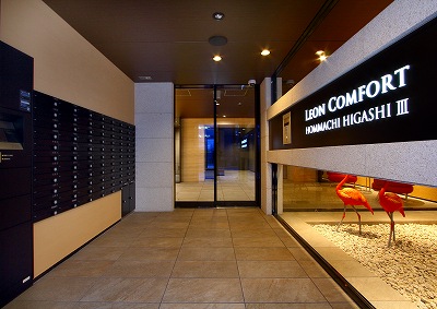 外観はライトブラウンの外壁と黒色のバルコニーとすることで、美しいコントラストを醸成し、建物の存在を際立たせています。エントランス前の坪庭にはフラミンゴやコビトカバといった動物たちの等身大オブジェを配置し、心和むオブジェの存在が入居者のみならず通行人の関心をも引き、都会的なアートの香りを漂わせています。通路は内廊下仕様とし、ビニルクロスとタイルカーペットで仕上げることで、まるで高級ホテルのような、ゆったりとした空間を創出しました。
