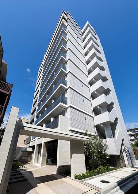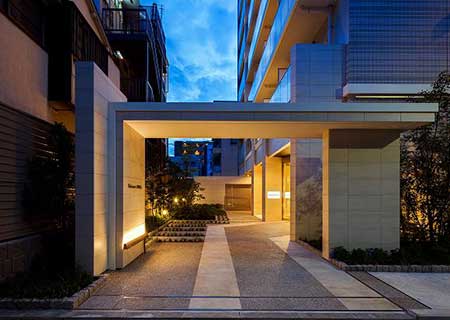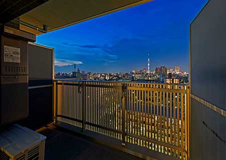 「ホテルのような内装とデザイン」、「東京スカイツリーの夜景を楽しむ」を設計の基本コンセプトに、外観はやわらかいベージュ色を基調に、タイルをライン状に張ることで立体感を際立たせ、高級感のある洗練された印象となるよう仕上げました。