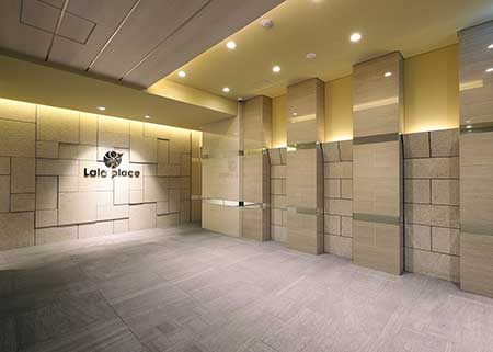 鉄筋コンクリート造15階建ての外観は、グレーと白、黒を配したタイル貼りで、高級感に溢れています。全面ガラス張りの風除室を用いたエントランスは、機能性と美しさを兼ね備えました。フロント部分に配された3つの植栽には背丈の異なる樹木を配し、自宅の前で四季の移ろいを楽しむことができます。