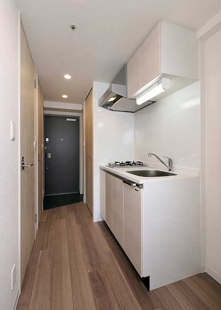 間取りは1Kで部屋タイプは4種類と豊富にそろっており、総戸数は56戸。ライフスタイルやお好みに合わせて選択可能でございます。
