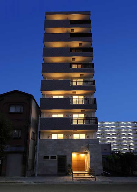 TOYOTOMI STAY PREMIUM 長橋(トヨトミ ステイ プレミアム 長橋)は2019年竣工、鉄骨造9階建て、総戸数25戸の賃貸マンションです。敷地面積234.75平米の狭小地でありながらも、大阪キタ及びミナミへのアクセス抜群な立地の良さを活かし、単身者向け賃貸マンションとして入居率向上と高い資産活用効果を図った土地活用事例です。
