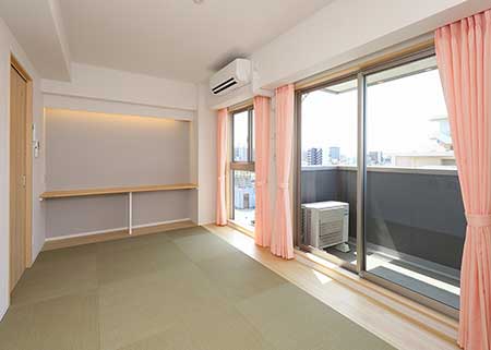 入居率向上のため、賃貸入居希望者の人気のバス・トイレ別、間取りタイプは1Kで、開口部を広くとったモダンな和洋室となっており、作り付けのデスクがあるため、仕事・趣味スペースとして楽しむことができます。