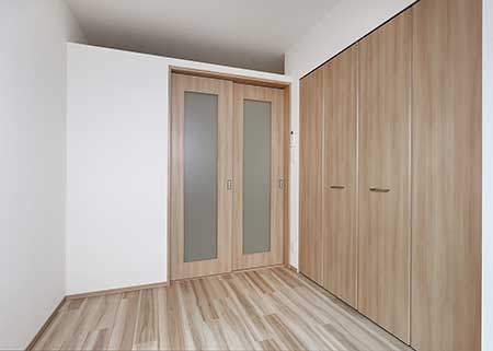 全室南向きの設計のため、明るく開放感十分です。LDK・DKと部屋を区切る引き戸上部の欄間が空いているため、エアコン1台で部屋全体に空調が行き渡り、快適に過ごすことができます。