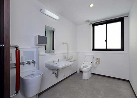 シニアスタイル西宮北口は99部屋を有し、居室は1ベッドタイプが97室、2ベッドタイプが2室あり、18㎡の1ベッドタイプは温かみのあるアイボリーの壁紙に濃い目のフローリングを採用しお洒落で落ち着いた空間を創出しました。居室トイレは両側に手すりを設け広めに設計しているため、安全にご利用いただけます。2ベッドタイプは36㎡と広めの設計でキッチンも設けているため、ご夫婦での入居にも対応し、ゆったりと過ごしていただけます。