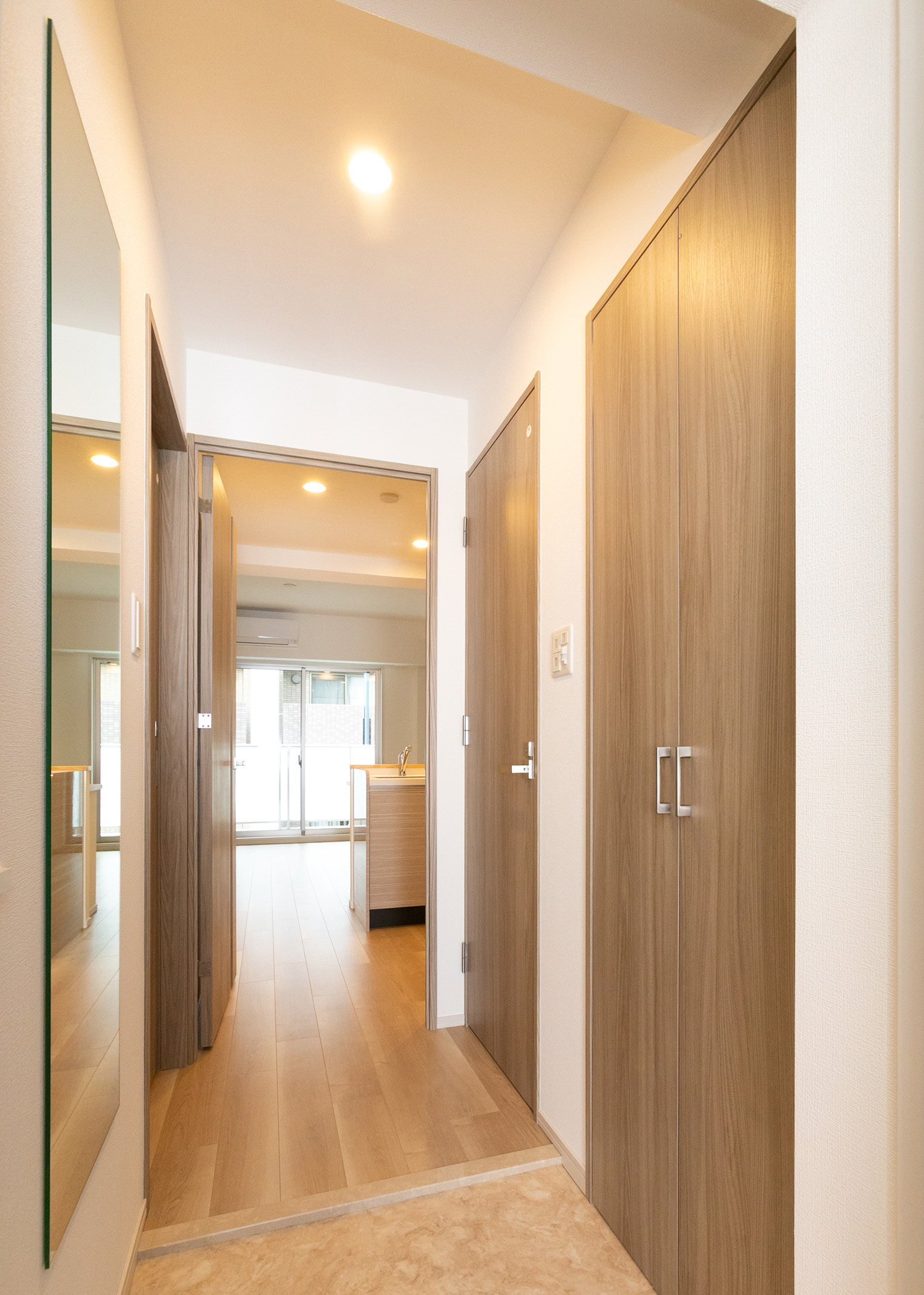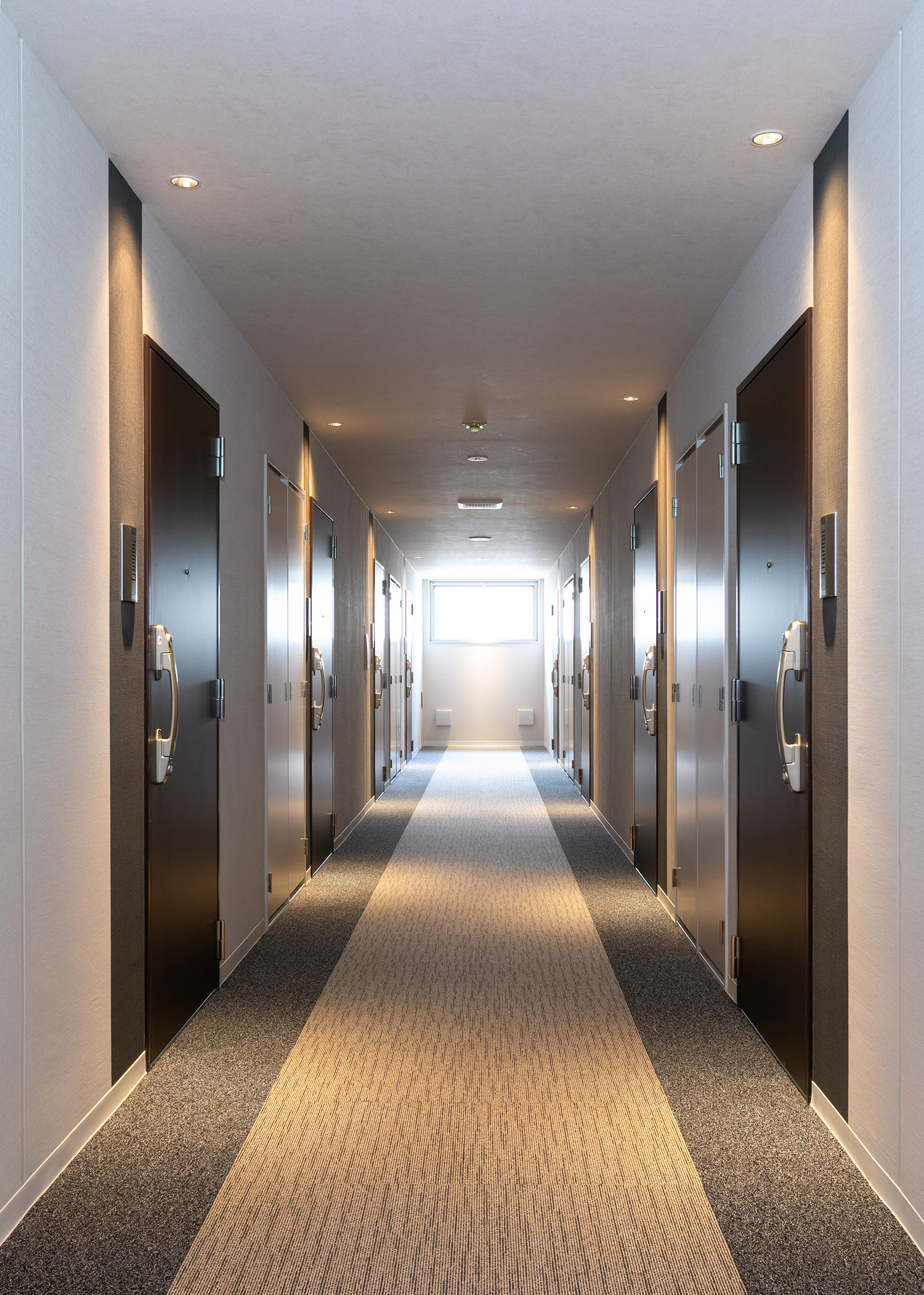 ホテルライクな高級感溢れる内廊下設計になっており、内廊下には絨毯を採用、賃貸マンションとは思えないほどの贅沢な趣に仕上げました。