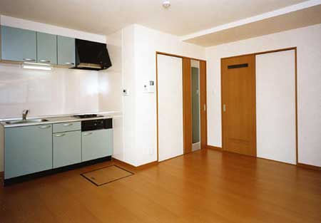 ルネス工法によるワンルーム賃貸マンションです。 外観は、茶系の落ち着いた印象のマンションです。内装は、ルネス工法により、床下収納があり、生活空間が広々と利用できます。また設備も2口コンロ等充実しています。 1階はテナントスペースとなっており、現在は喫茶店が入られています。