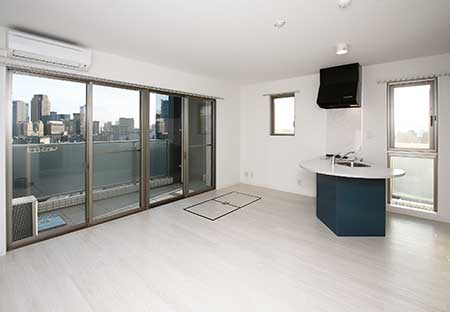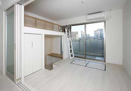 全室にルネス工法を採用した賃貸ワンルームマンションです。広々とした床下収納スペースに加えてルネス工法ならではのスキップフロアによる、ロフトとDEN(書斎)のタイプや、お部屋面積45m2と他に比べて少し広めのタイプなど、バリエーションに富んだ間取りとなっています。