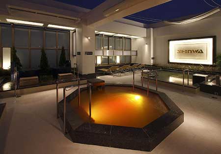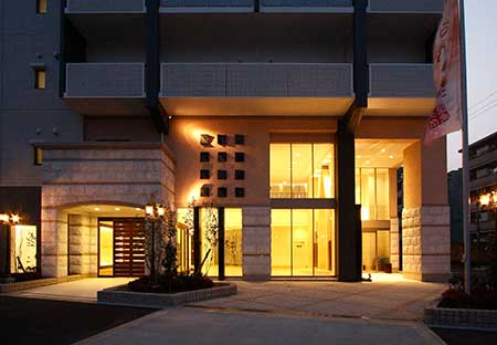 ルネス工法による総戸数101戸の賃貸マンション 温泉施設「ひなたの湯」