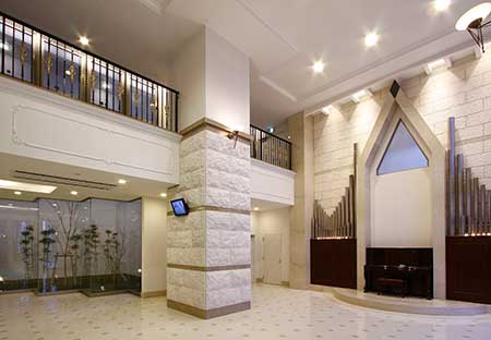 2階吹抜けのエントランスにはアンティークオルガンを設置し、外から帰ってこられた入居者様を優雅に出迎えています。